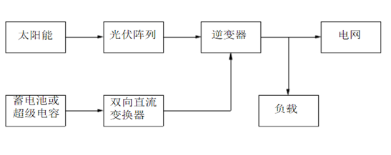 下圖是一個太陽能光伏并網(wǎng)發(fā)電系統(tǒng)示意圖,該系統(tǒng)由太陽能、光伏陣列、雙向直流變換器、蓄電池或超級電容和并網(wǎng)逆變器構成。